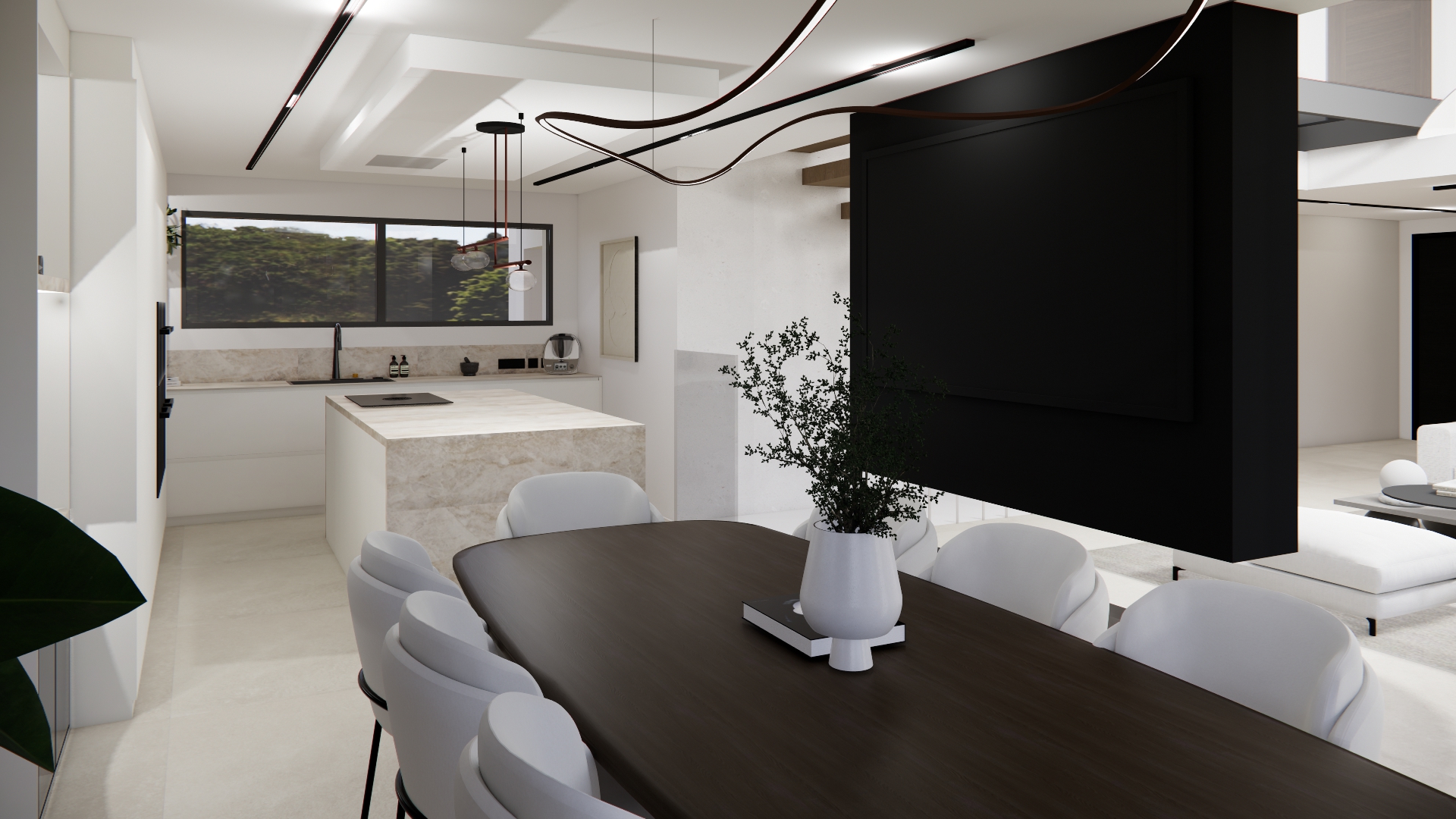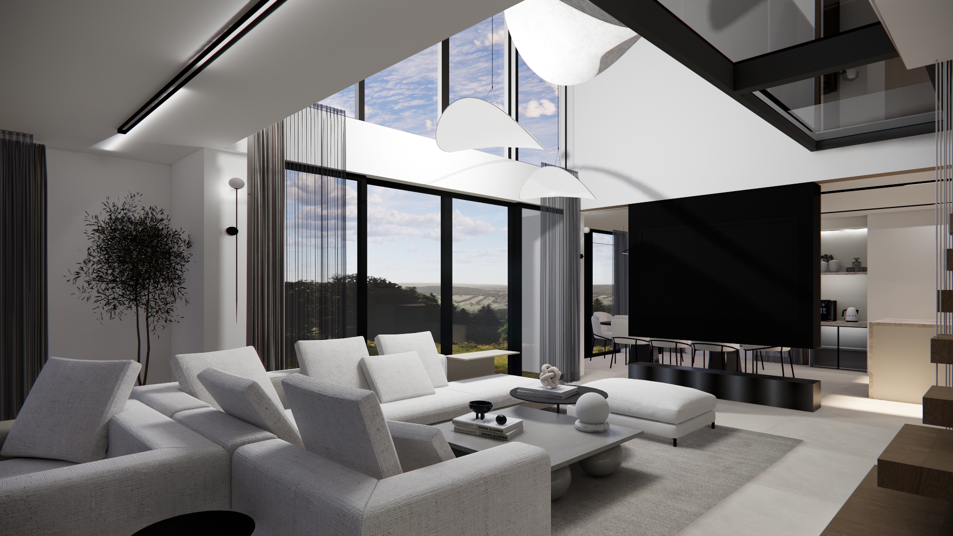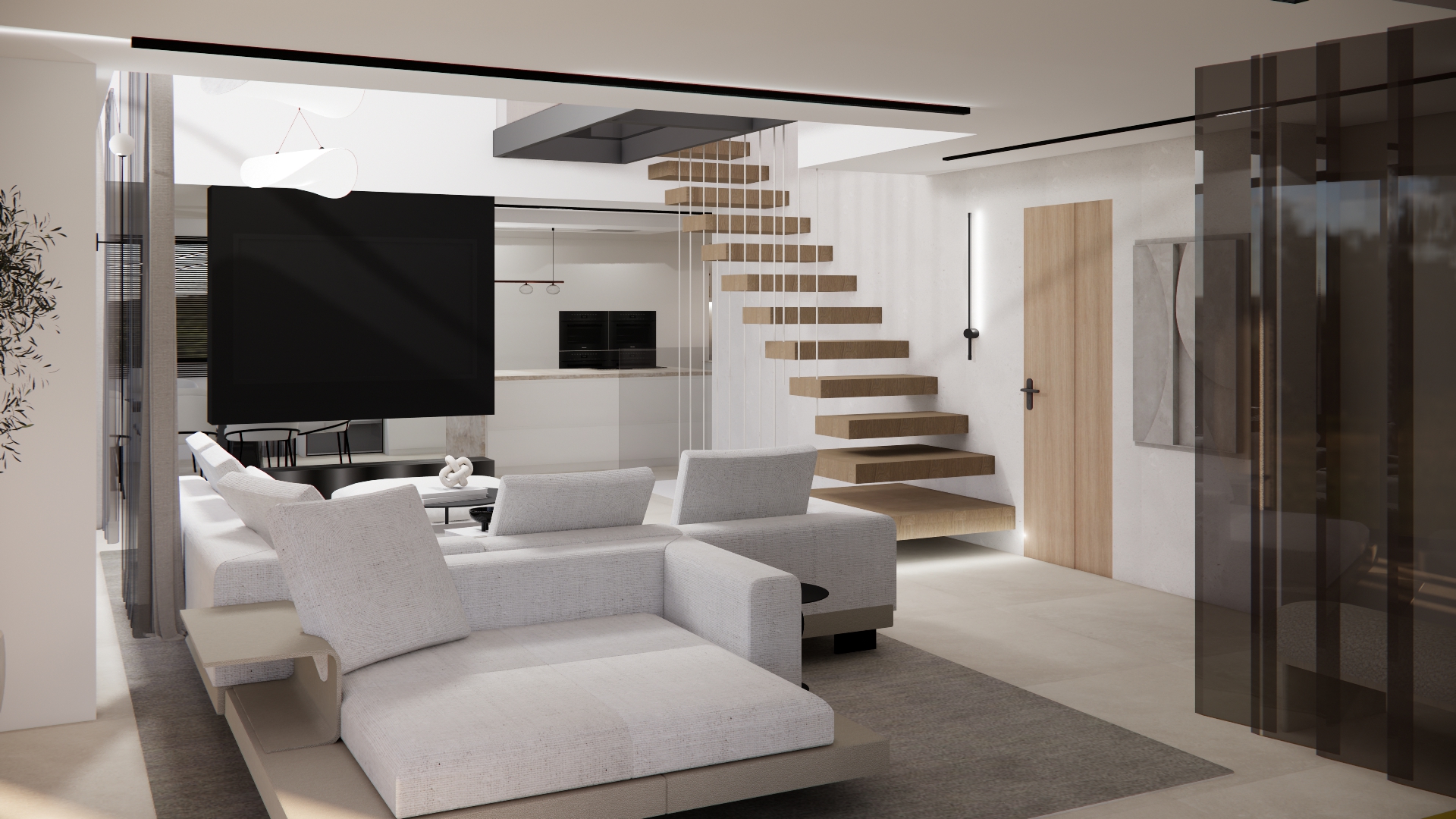 Une décoration élégante et raffinée et  un agencement fonctionnel pour cette maison aux lignes très contemporaines. Tons clairs, matières naturelles et espaces minimalistes.