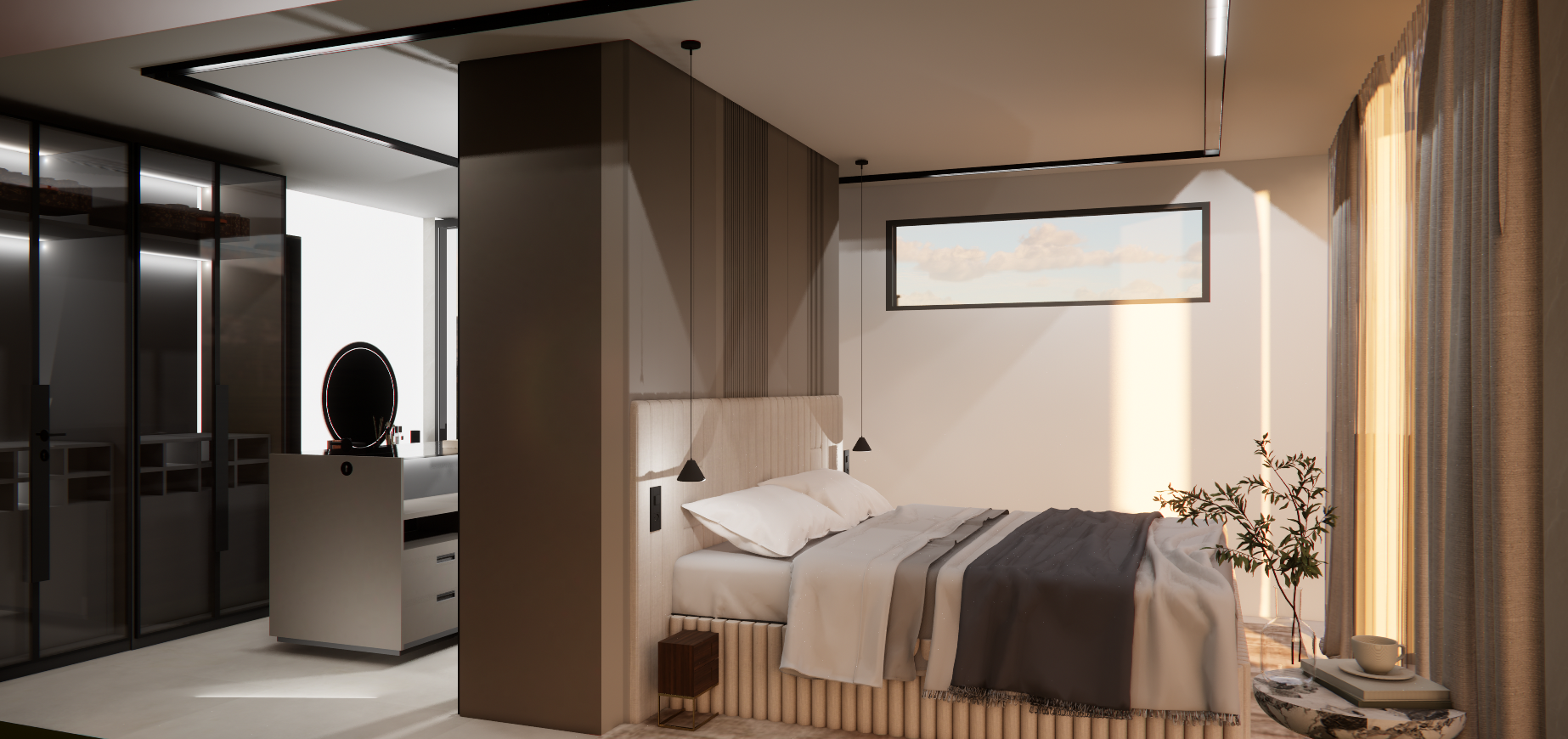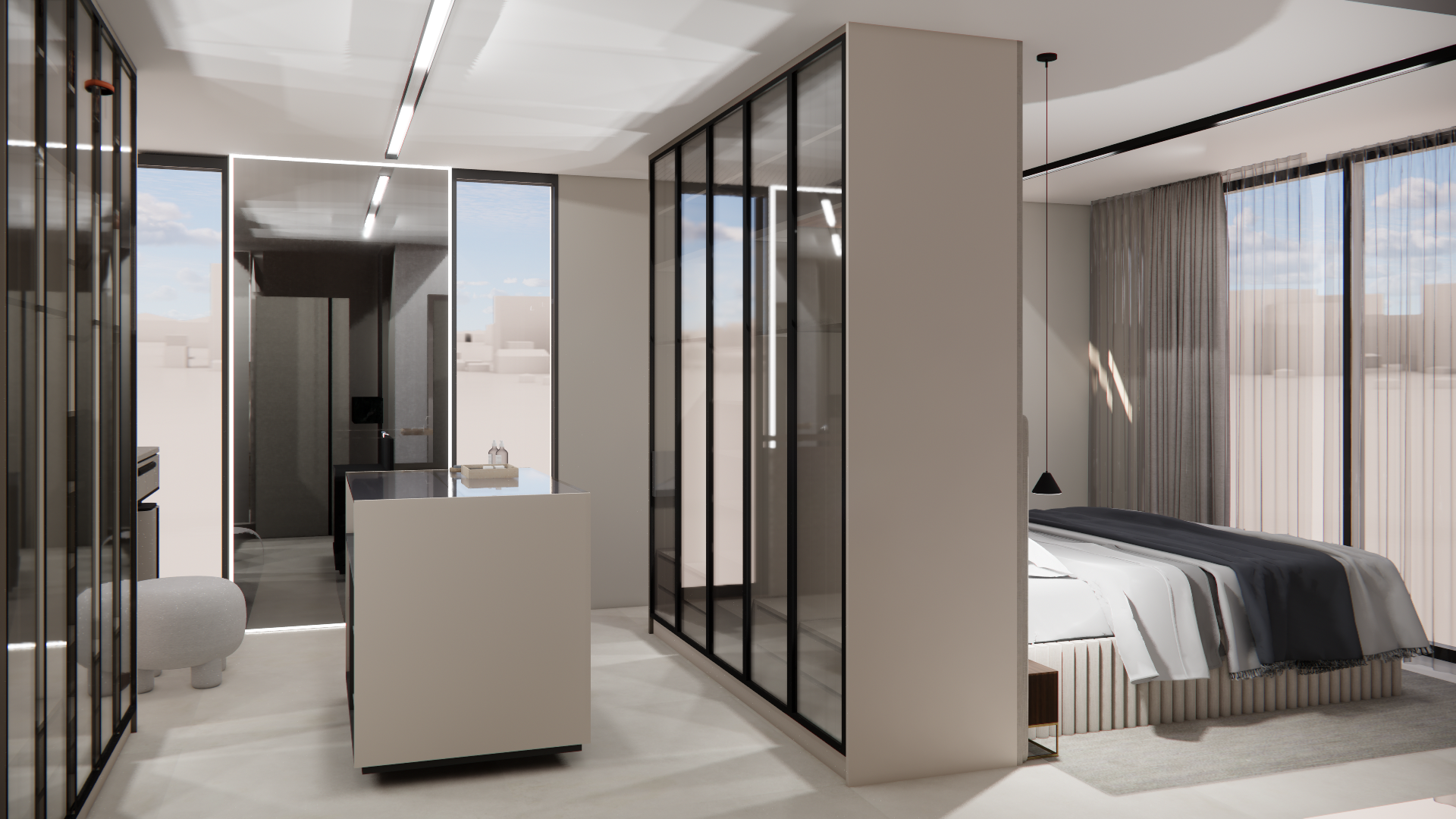 L’objectif était de réaliser un lieu haut de gamme, plein de détails et avec des matières nobles. Une suite parentale luxueuse, une pièce de vie sobre et chic,des chambres enfants intemporelles .