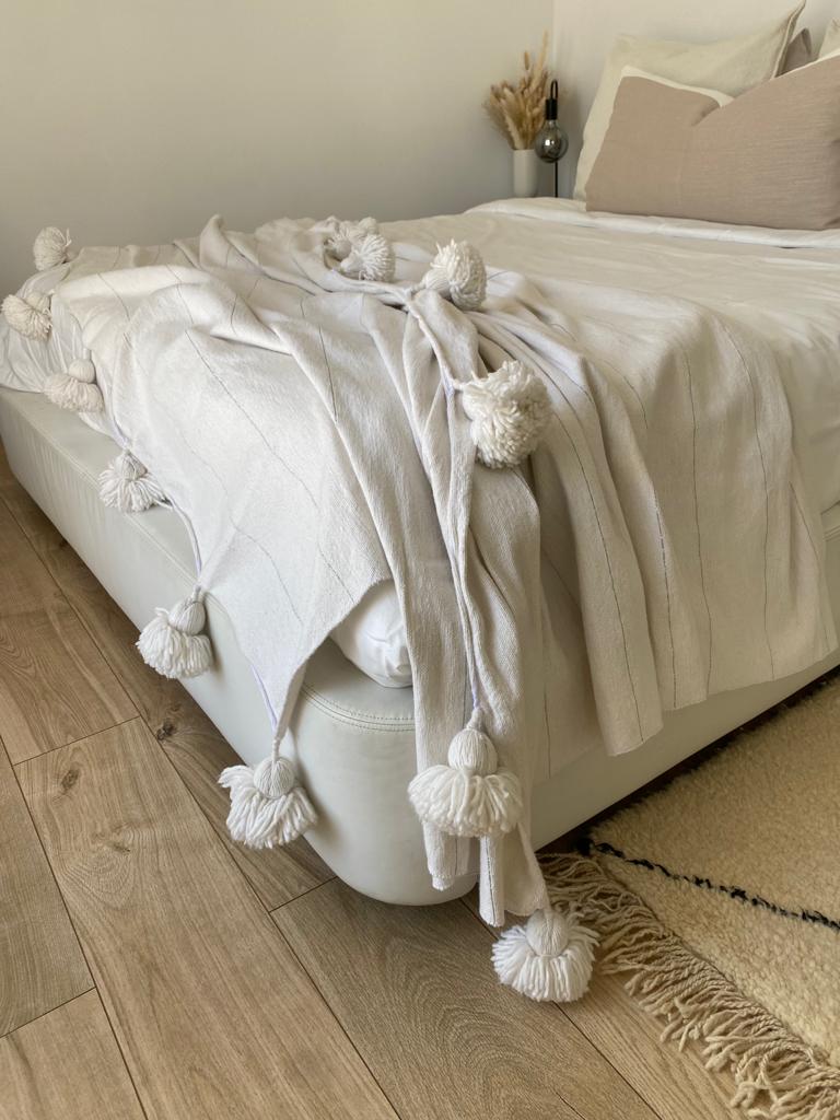 Plaid XXL en laine Blanc & rayures argent